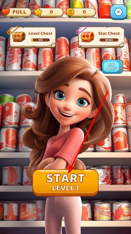 点击“START LEVLE1”按钮开启第一关,开启货架整理挑战之旅,熟悉基础操作,观察如何能够快速通关。