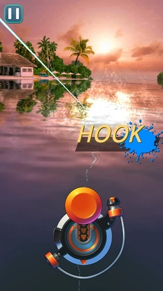 稍后出现的 Hook,是表示鱼儿上钩信号,出现该标志的话,请在3秒内拖拉按钮。