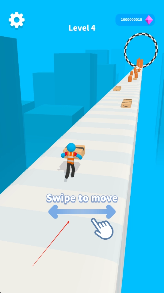 进入游戏后,通过滑动屏幕来操控角色移动,用双手托举砖块穿过第一道门框时,要注意保持身体垂直,防止砖块碰到门框边缘。