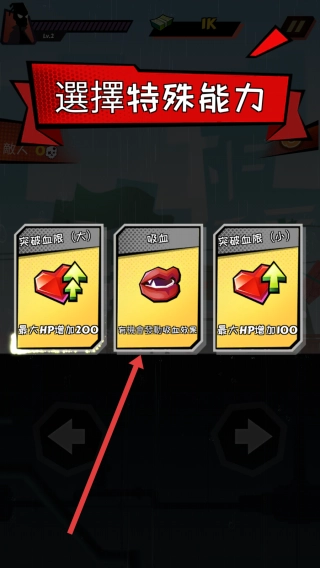 击败敌人后,在特殊能力选择界面,你可以点击选择吸血等技能,根据自身需求挑选后,就能继续进行战斗冒险了。