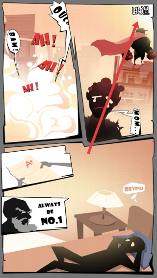 漫画展示了角色的复仇背景,点击右上角的“跳过”按钮,就能快速进入游戏,之后操控火柴人在城市场景里展开探索。