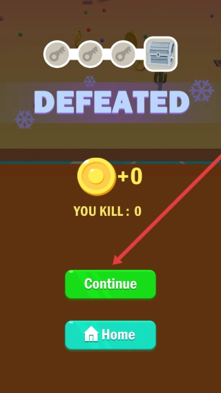 结算界面,点击【Continue】可继续下一轮竞技;若要返回主页,选择【Home】即可重新开始匹配。