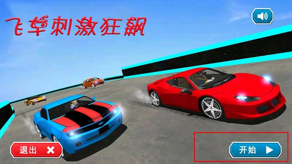 玩家在游戏主界面点击右侧蓝色的开始按钮后,便能进入赛车场景,和其他车辆一起开启高空竞速挑战。
