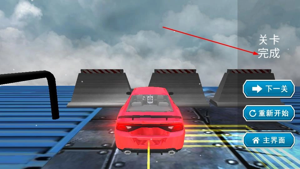 成功到达终点后,界面会显示关卡完成,此时可以选择进入下一关继续挑战、重新开始当前关卡、重玩该关卡或者返回主界面。