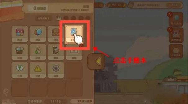 1、玩家进入游戏之后在菜单界面选择手账本。