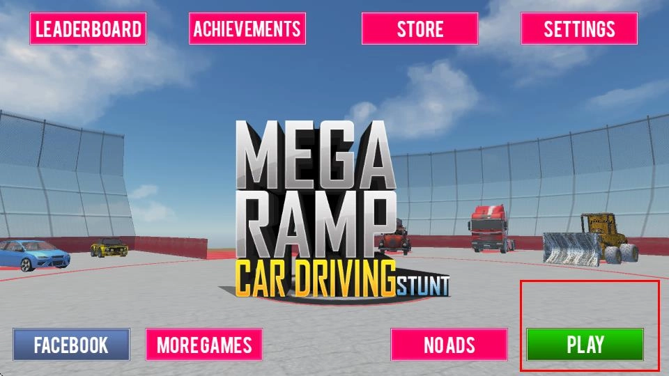 点击主界面右下角那个绿色的PLAY按钮,就能进入游戏挑选车辆,开启巨型坡道的特技驾驶挑战,投身到刺激的汽车特技冒险之中。