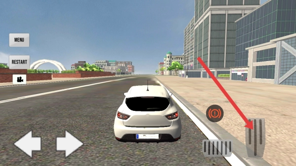 进入游戏后,点击右侧的油门踏板,以此控制汽车加速行驶,开启城市驾驶的自由探索之旅。