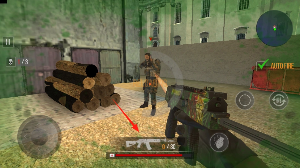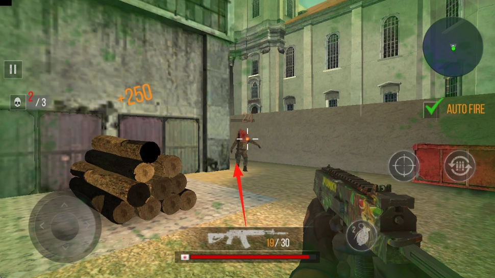 进入游戏后,敌方对手便会出现,瞄准带有红箭头标记的僵尸,开启AUTOFIRE自动射击功能即可。