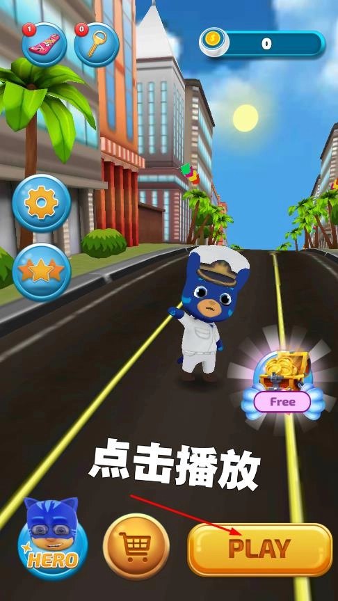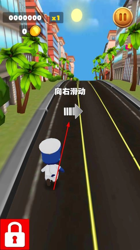 进入界面后,点击PLAY按钮,角色便会在道路上自动奔跑,此时可根据提示学习滑动屏幕,以此来控制角色的移动方向。
