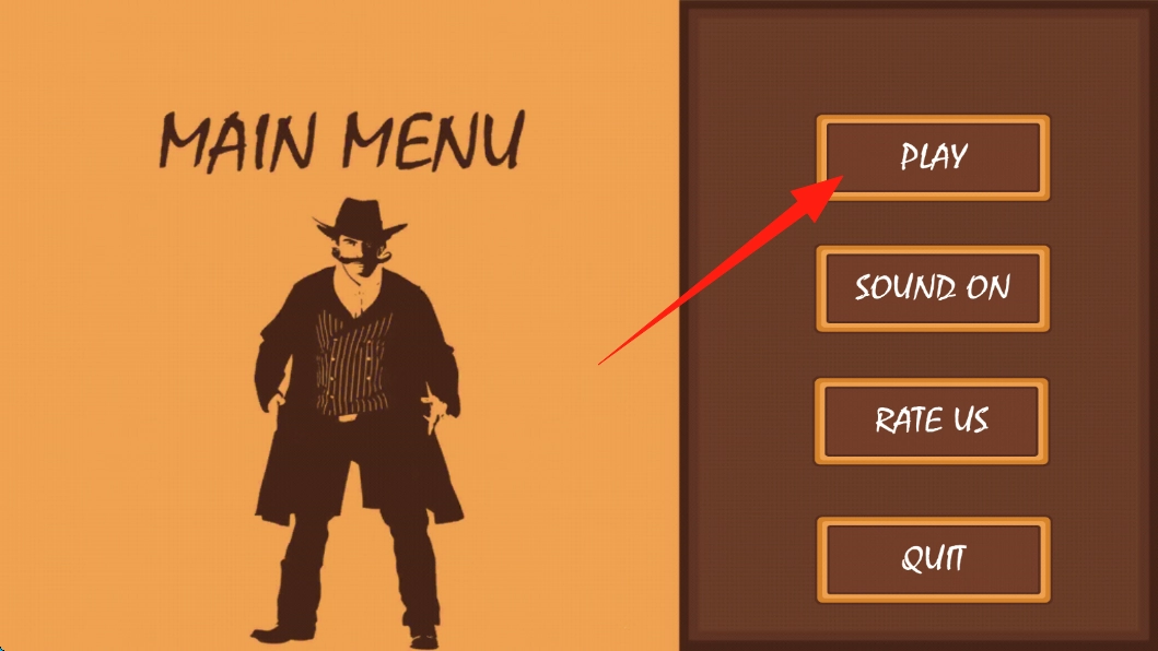 在主菜单找到PLAY选项并点击,接着进入模式选择界面,选择开启西部射击游戏模式,最后点击开始游戏按钮即可。
