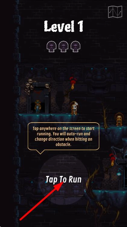 进入洞穴入口后,脚下是铺满碎石的通道,试着点击屏幕进行跳跃,感受并熟悉起跳力度和落地位置之间的关联。