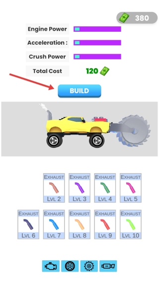 驶入Level1赛道,操控改装车辆,借助锯片等武器击溃对手,夺取奖励。