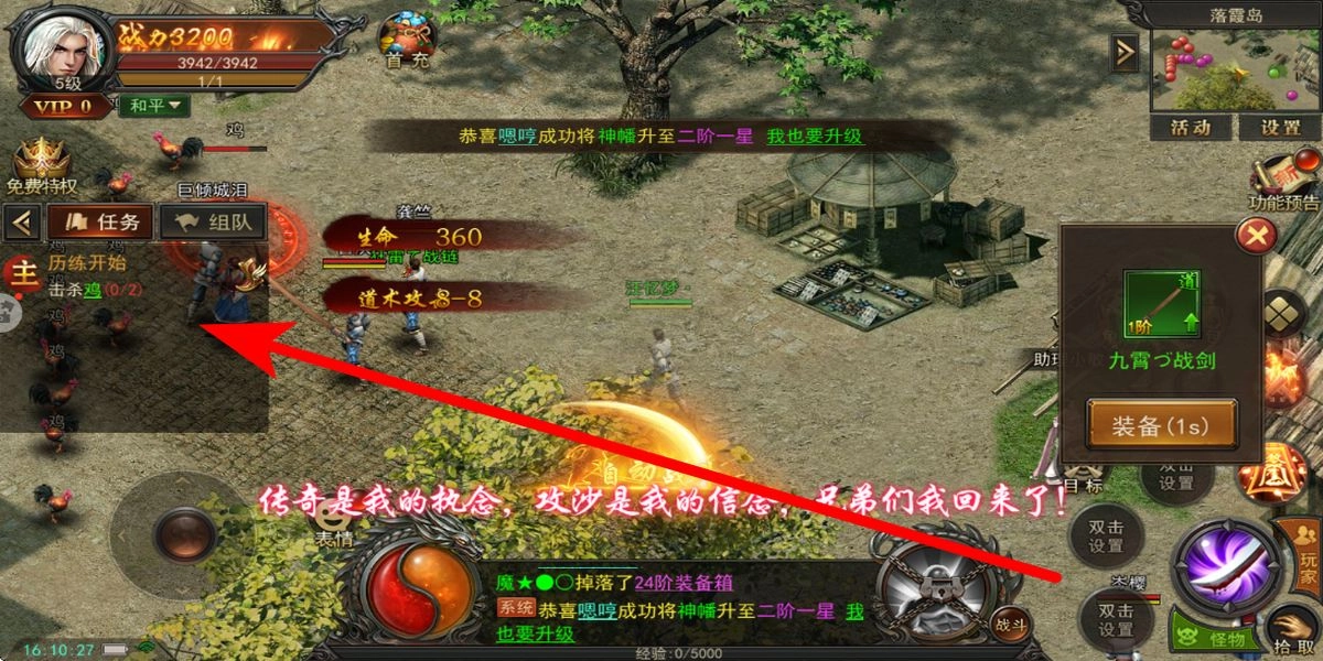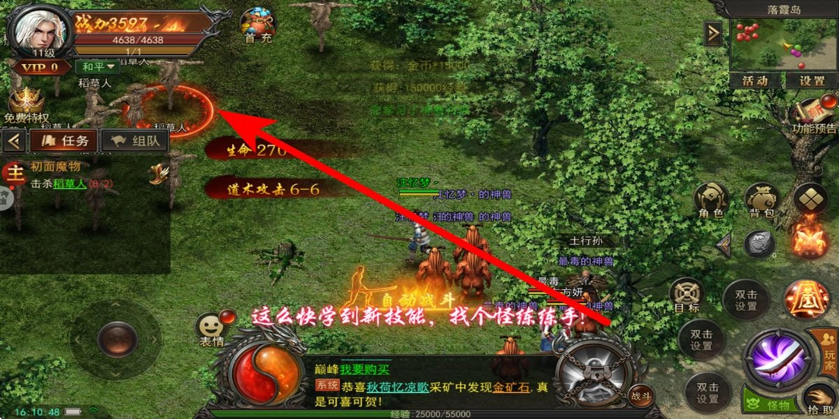 从接取初始历练任务开始,你需要前往落霞岛击杀鸡怪。开启自动战斗功能能让你更高效地完成任务,任务奖励包含基础装备和资源,这些可以帮助你提升前期属性。