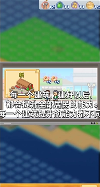 6、每一个建筑建好以后都会提升全部居民的能力,每一个建筑提升的能力都不同
