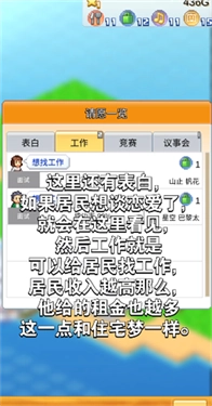 3、市政厅刚刚开始的时候和其他东西都没有相性,可以暂时把它建在角落里,之后可以再移动;市政厅共有四个选项,按照从上到下,从左到右依次是扩地、设施、居民、措施