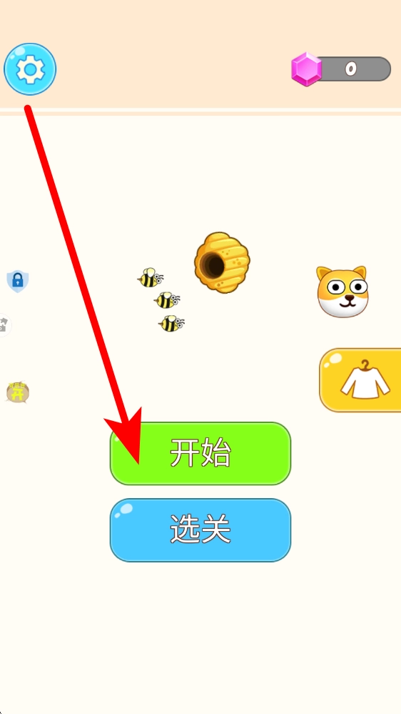 新手玩家进入游戏后,点击开始按钮或选关按钮选定关卡,即可进入对应的游戏场景。场景里会出现狗头、蜂巢等元素,玩家需要提前规划好保护防线。