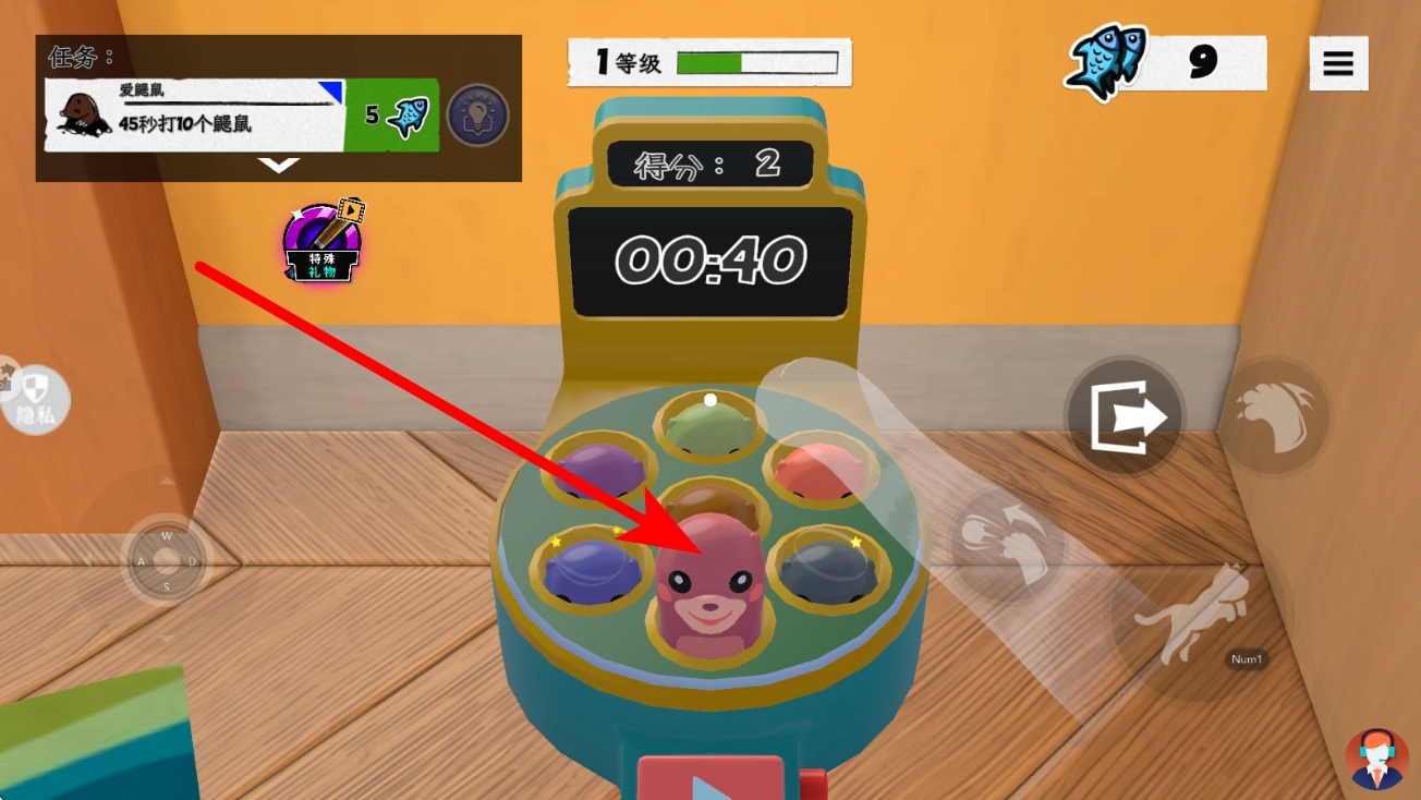 装置启动后,点击右侧对应的操作按钮(退出键或互动键),即可开启打鼹鼠玩法。此时鼹鼠会从孔洞中弹出,你需要把握好时机,通过释放宠物技能或直接点击的方式进行击打。