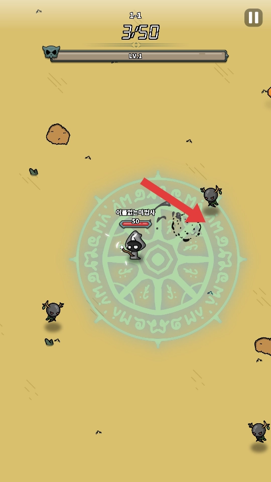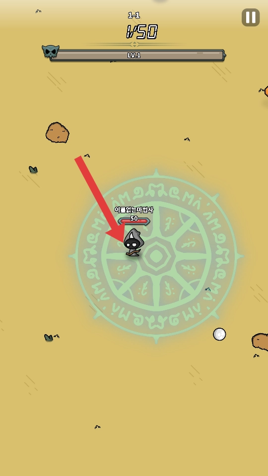 进入关卡1-1后,操控无名魔法师在带有符文的圆形区域熟悉初始位置,准备应对即将出现的敌人。