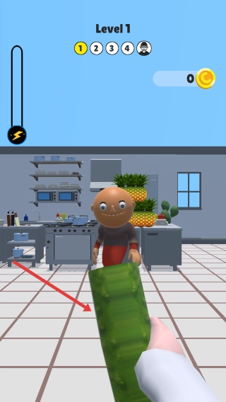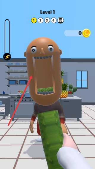 指尖抛物线投掷玩法:用一根手指在屏幕上滑动来调整投掷角度,长按屏幕进行蓄力以控制投掷力度,松开手指即可释放三明治;在“抛物线关卡”里,你需要考虑重力带来的偏移,精准击中高台上的敌人。