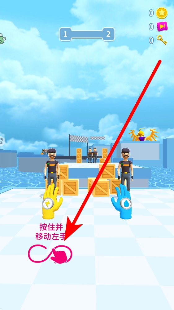 首先会出现按住并移动左手的指引,新手要依照指引,按住相应区域并移动左手,熟悉左手的操控方法,为后续操作筑牢根基。