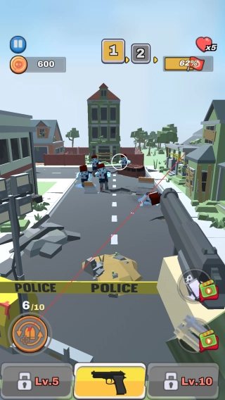 持续留意僵尸的出没位置与数量,灵活调整射击的角度和节奏,力求消灭更多僵尸,达成关卡设定的目标。