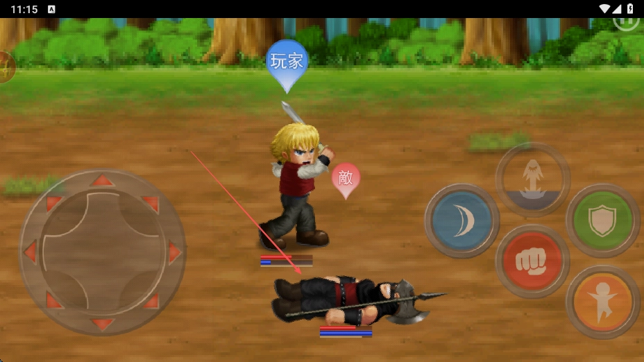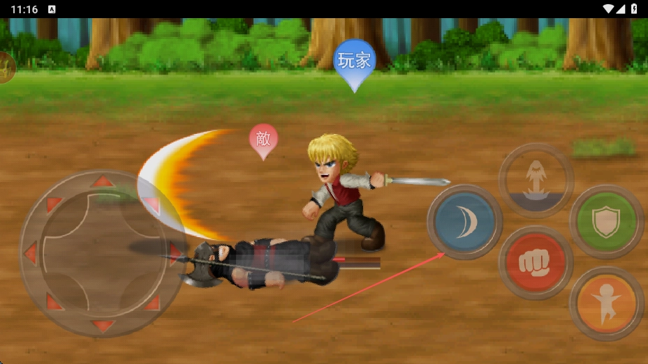 你可以借助左侧的虚拟摇杆来操控角色移动,使其逐步接近敌人,为接下来的攻击做好准备。