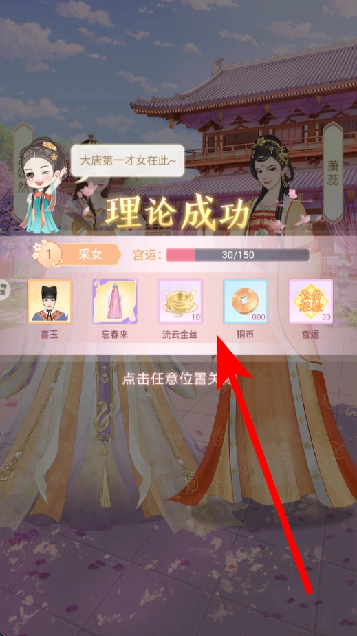 上前去理论时,要是成功了,就会显示理论成功,还能得到喜玉、忘春来、流云金丝、铜币这类奖励,这些东西可以用来培养角色,增强角色在宫廷里的实力和地位,帮助推进宫廷中的历程。