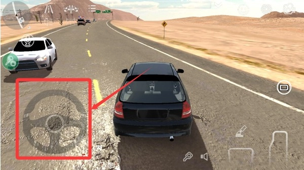 屏幕左侧的按键用于操控汽车方向,右侧的按键则分别对应油门和刹车功能。