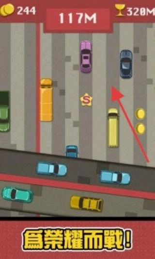 开局在拥堵公路,沿箭头方向,灵活穿车,别碰撞。