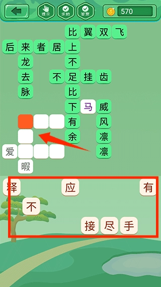 将下方的字填入空格中即可完成关卡。