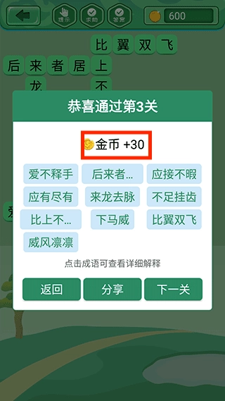 观察文字的排列方式,找出完整的成语。基础的组合形式比较容易被发现,而复杂的排列则需要深入思考。若能完美识别成语,还能获得额外的提示。