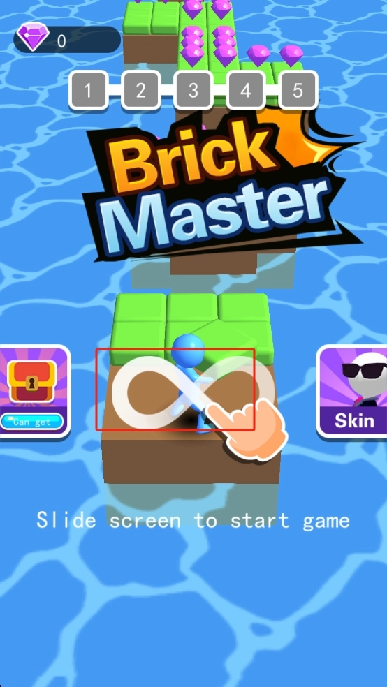滑动屏幕即可启动游戏,你需要操控蓝色小人进入关卡,开启一场收集紫色宝石、堆叠绿色砖块来搭建路径的挑战。