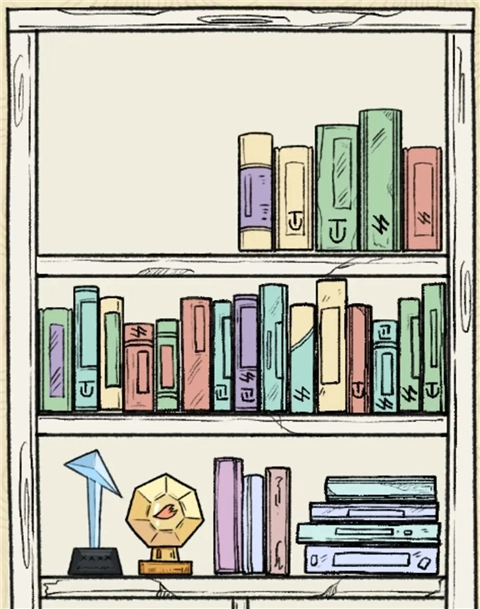 这里的游戏规则是移动所有的书本至最上方即可胜利,每次移动的书本必须和上一次移动的颜色或者符号一致