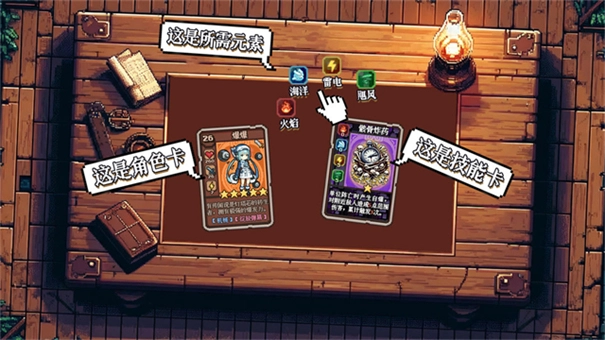 少女们的角色卡分为四种颜色,分别代表着四种元素力量,火焰、飓风、海洋、雷电,而如果你仔细观察技能卡就会发现,每张技能卡上都标注了他们各自所需要的元素点数。