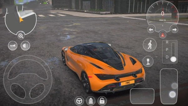 2、右下角的方向盘可用于操控车辆方向,其旁的两个按钮分别对应加速与刹车功能。