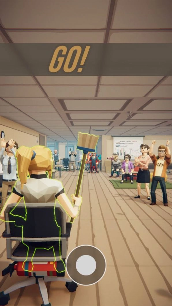 办公室对决是一款充满魔性与趣味性的休闲益智类,游戏背景设定在充满日常气息的办公室环境中。玩家将扮演公司职员,在下班后与同事进行一场别开生面的对决,以此缓解工作压力。游戏提供了丰富的战斗场景和多样的武器选择,如扫帚、簸箕、办公椅等,让玩家在轻松愉快的氛围中体验别样的战斗乐趣。