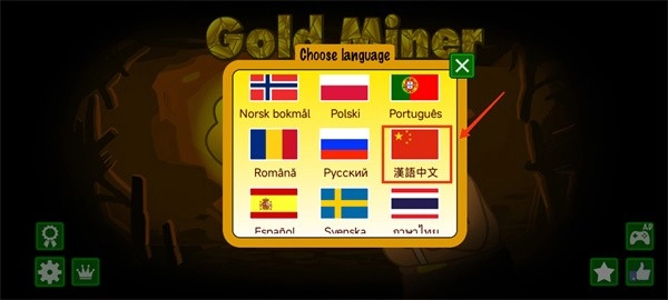 1、打开黄金矿工手机版小游戏,点击界面左下角的设置按钮;