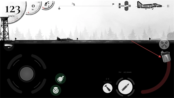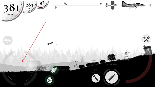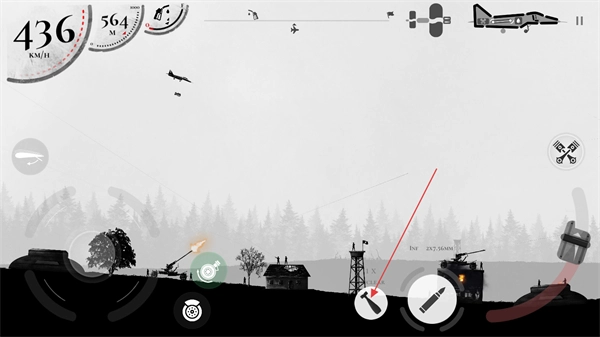 你可以通过滑动左下角的方向盘来控制飞机的飞行高度,同时要留意地面发射的导弹攻击。
