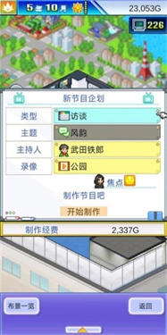 【高度自由度】游戏给予玩家高度的自由度,玩家可以自由制定节目企划和发展计划。