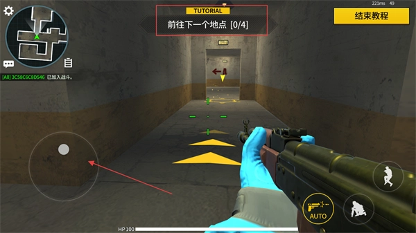 通过界面里的移动按钮操控角色行动,跟着指引到达指定位置,按流程完成走位任务,熟悉角色的基础移动方法,适应战场中的走位节奏。