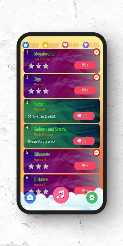 流畅的游戏体验。我们尽力将您的手机变成具有真实声音效果的魔术钢琴。