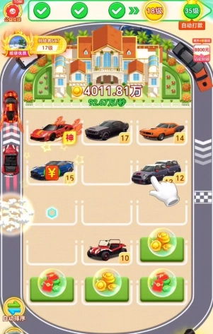 2、通过简单的合成就能不断的解锁各种炫酷的汽车,每一次解锁新的豪车还能够获得额外奖励。