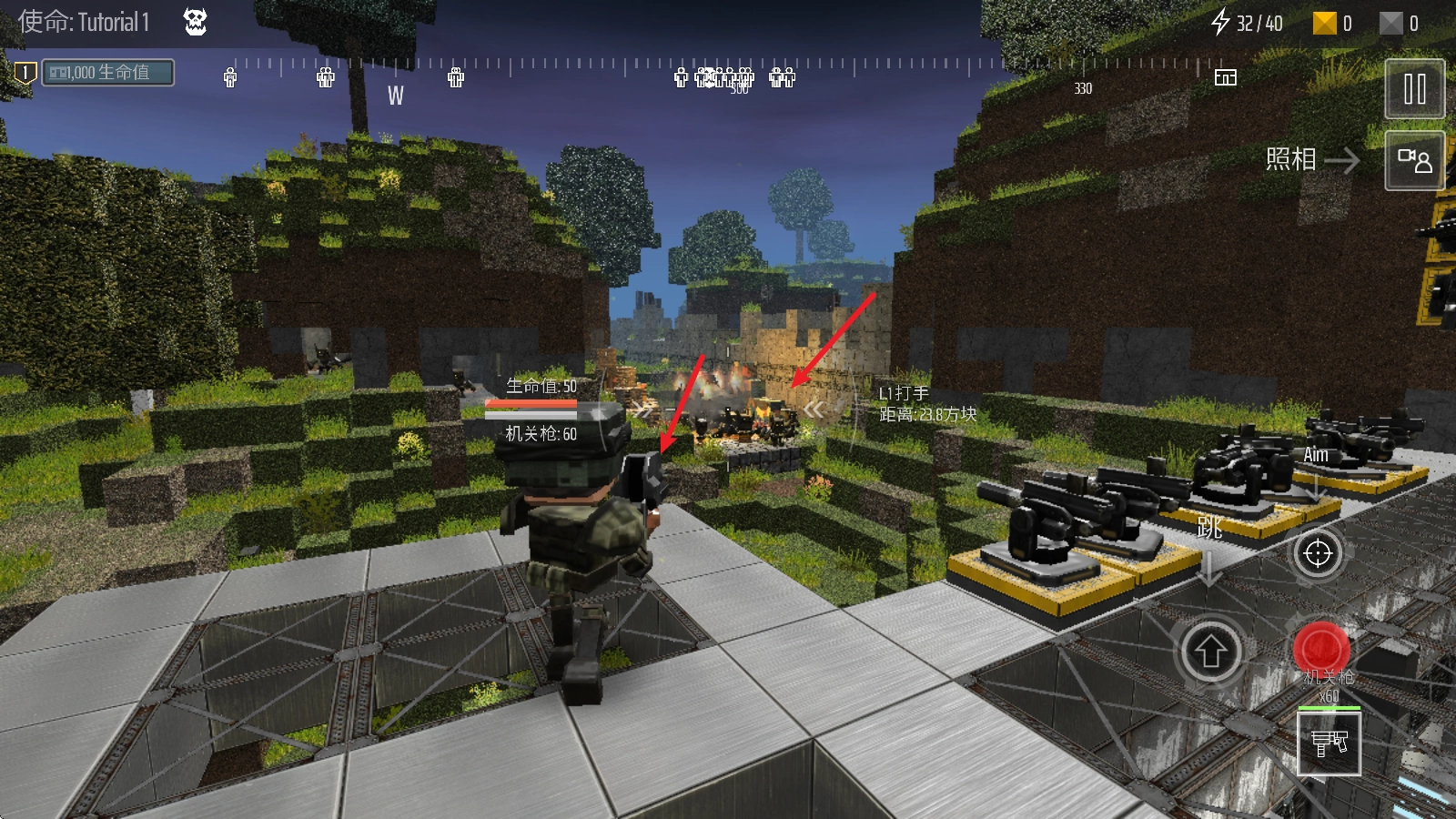3、敌人出现后,我们可以瞄准进行射击,周围的防御设施也会进行攻击。
