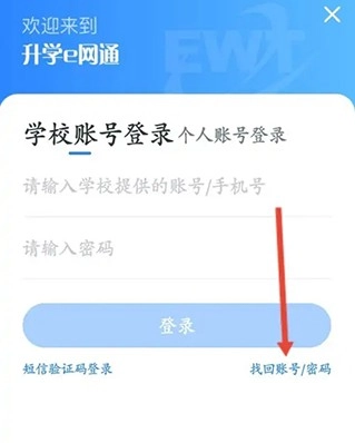 进入手机的升学e网通,点击找回账号或密码。