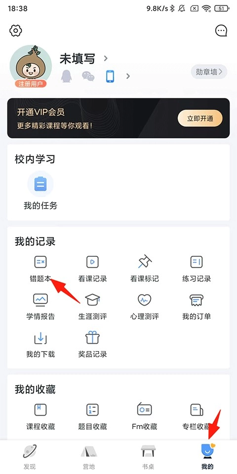 打开升学e网通后,点击【我的】板块,再找到并点击【错题本】功能(当前该功能仅支持对错题进行重做或重练操作)。