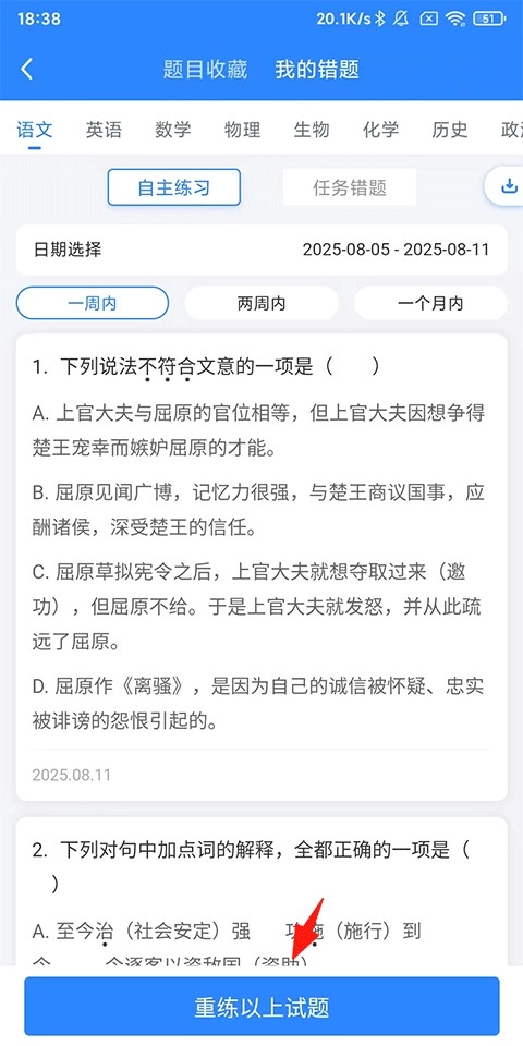 开始【错题重练】。
