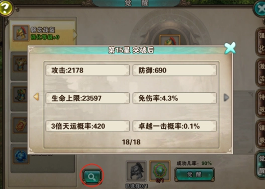 在角色觉醒界面中,点击预览功能即可查看对应部位不同星级所能带来的属性成长情况。