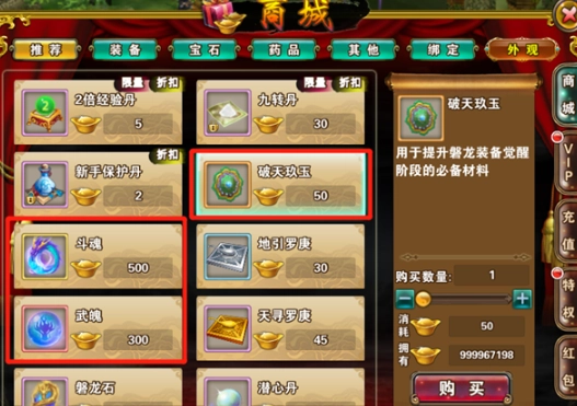 破天玖玉,武魄,斗魂都可以在商城中购买。