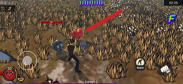 战斗过程中可能会被野猪攻击受伤,左下角的爱心图标代表生命值,一旦生命值降至0,挑战便宣告失败,不过你可以在地图里收集爱心来补充生命值。