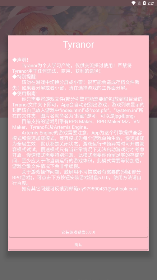 A:Tyranor是由我们组里的真大佬アキラ,基于核心库独立编译优化而成的全新安卓端游戏模拟器,和常见的ons、krkr模拟器都不一样。